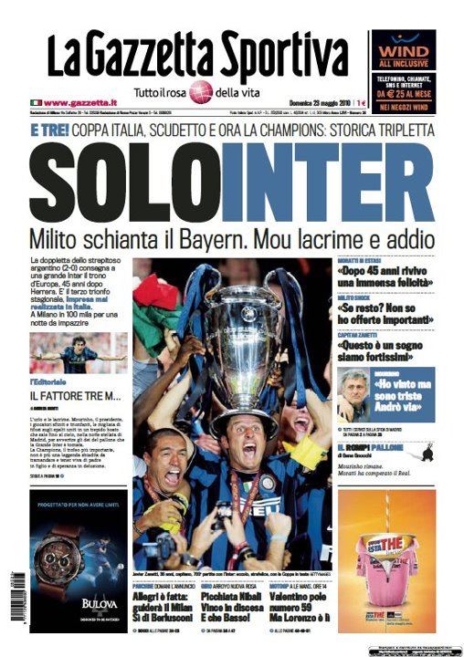 The image imprinted onto it is the front page of the Gazzetta dello Sport on 23 May 2010, a morning after that no Inter fan will ever forget for as long as they live (you can see a bigger image of it here).
